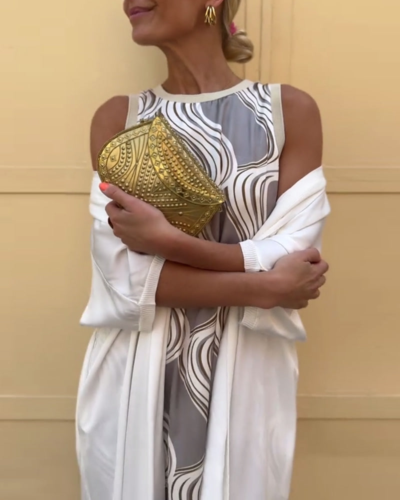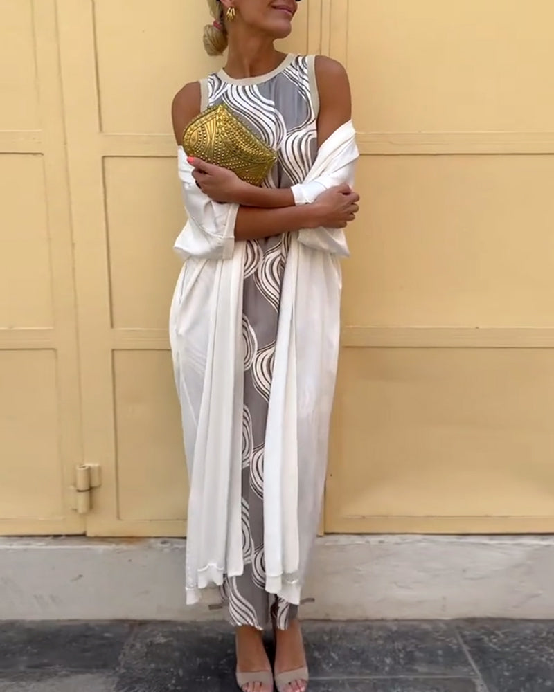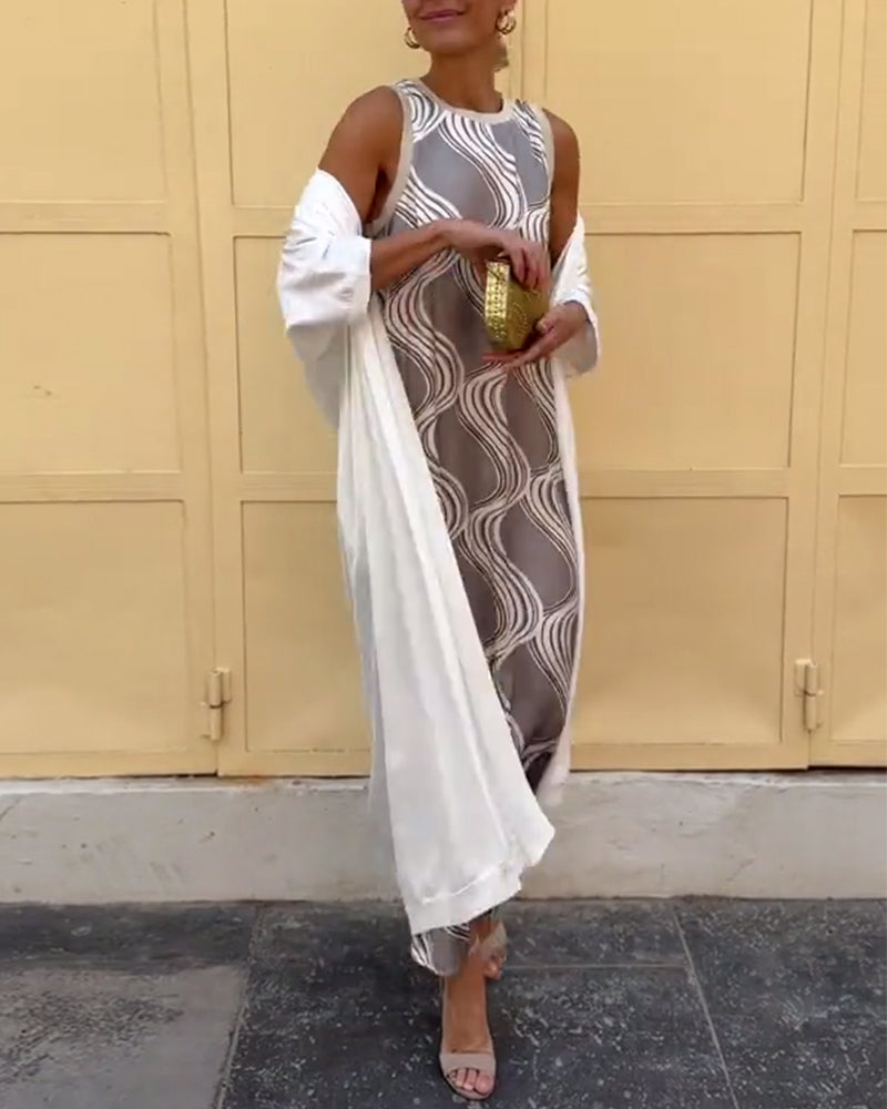 Icon1 Sett Frakk Vest Motetrykk Kjole To Deler