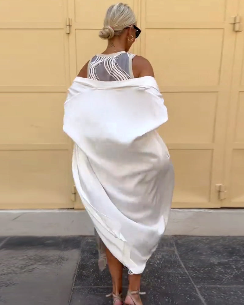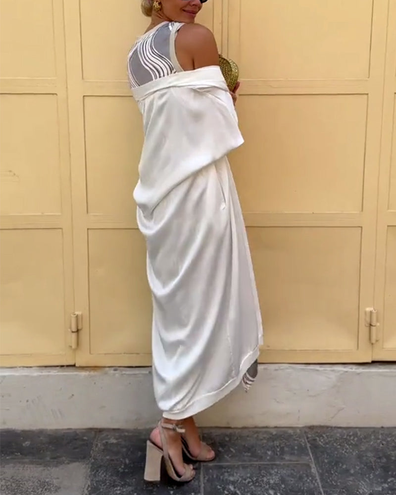 Sett Blonde Og Meshbluse Med Drapert Slipkjole
