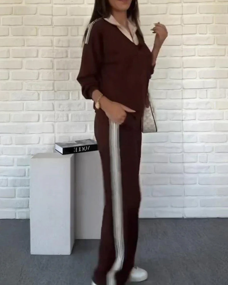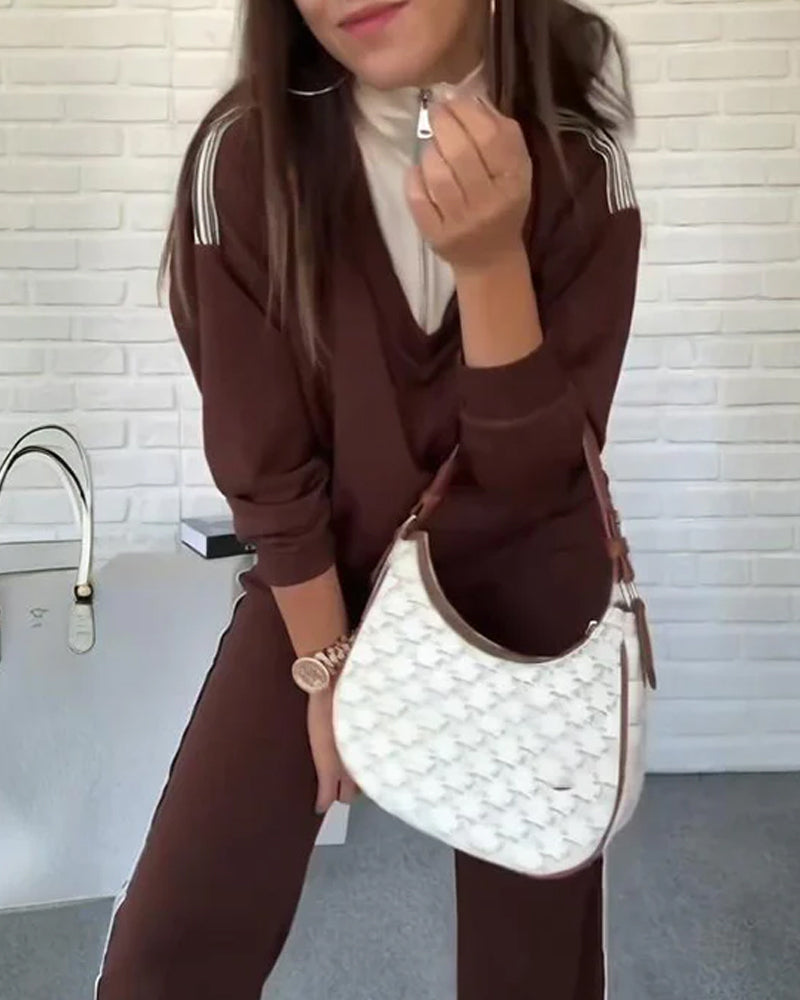 Todelt Sett Med Avslappet Stripet Sportsbukse Ved Ankelen