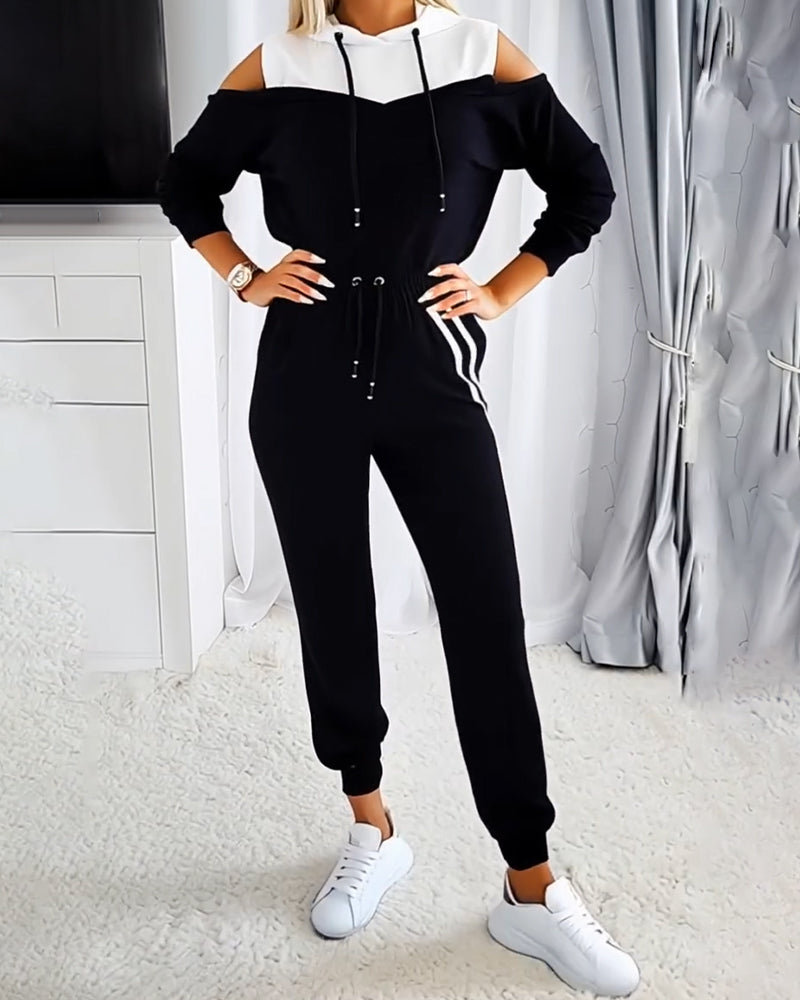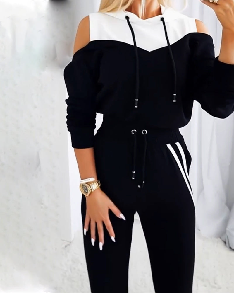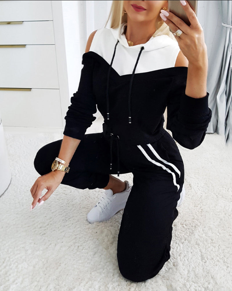 Todelt Sett Med Avslappet Stripet Sportsbukse Ved Ankelen