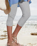 SPESIFIKASJONER Stil: Uformelt Materiale: Bomullsblandinger Mønstertype: Ensfarget Bukse type: Skinny bukser Bukselengde: 3/4 lang Midje type: Høyt liv Passform type: Skinny Årstid: Vår, Sommer, Høst Anledning: Daglig Pakken inkluderer: 1 x Bukser STØRRELSESTABELL (cm) Størrelse Midje(cm) Hofte(cm) Lengde(cm) S 68 85 71 M 72...