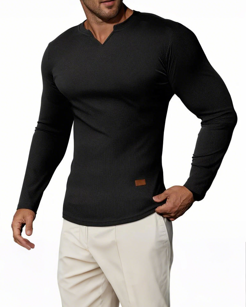 Skjorte Herre Slim Fit V-Hals Longline Muscle