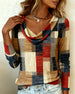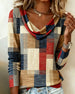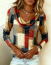 Kvinne Kausal Genser Med Krage Design, Denim Stoff, Patchworkdetalj, Rutenmønster Trykk Och Pullover Stil