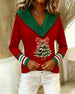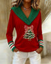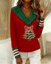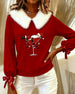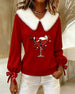 T-skjorte med avslappet v-hals og pelskrage, juletrykk