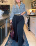 Bluse Med Vertikale Striper Mønster Og Elegant Stil