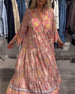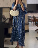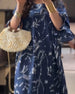 SPESIFIKASJONER Stil: Uformelt Materiale: Bomullsblandinger Kjole type: A-line Kjolens lengde: Maxi Halslinje: Rund hals Mønstertype: Trykt Ermetype: Utvidet erme Erme lengde: 3/4 erme Detaljer: Rufsete Passform type: Løs Årstid: Vår,Sommer Anledning: Daglig Pakken inkluderer: 1 x Kjole STØRRELSESTABELL (cm) Størrelse Bryst Lengde S 92 137...