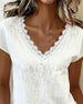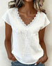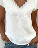SPESIFIKASJONER Topp type: Bluser Stil: Uformelt Materiale: Bomull Anledning: Daglig Halslinje: V-hals Ermetype: Vanlig erme Erme lengde: Kort erme Passform type: Vanlig Årstid: Vår,Sommer Detaljer: Blonder Pakken inkluderer: 1 x Bluse STØRRELSESTABELL (cm) Størrelse Bryst Lengde S 97 65 M 101 66.5 L 105 68 XL 111 69.5 2XL 117 71 ...