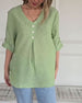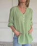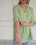 SPESIFIKASJONER Topp type: Topper Stil: Uformelt Materiale: Bomull og lin Anledning: Daglig Halslinje: V-hals Mønstertype: Ensfarget Ermetype: Vanlig erme Erme lengde: Halv erme Passform type: Vanlig Årstid: Vår,Sommer Detaljer: Knapper Pakken inkluderer: 1 x Topp STØRRELSESTABELL (cm) Størrelse Bryst Lengde S 97 65 M 101 66.5 L 105 68...