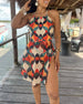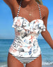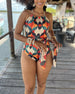 Sexy To-delt Trykt Badedrakt med Knyting