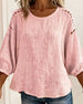 SPESIFIKASJONER Topp type: Bluser Stil: Uformelt Materiale: Bomull og lin Anledning: Daglig Halslinje: Rund hals Mønstertype: Ensfarget Ermetype: Lanterne erme Erme lengde: 3/4 erme Passform type: Vanlig Årstid: Vår,Sommer Detaljer: Uthult Pakken inkluderer: 1 x Bluse STØRRELSESTABELL (cm) Størrelse Bryst Lengde S 97 68 M 101 69.5 L 10...