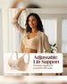 STØRRELSESKART FUNKSJONER Justerbare Løftestropper – Få et personlig løft med våre justerbare flernivåstropper. Denne innovative designen gir overlegen oppoverstøtte, forhindrer effektivt henging og sikrer at bysten din forblir perfekt posisjonert og sikker hele dagen. Trådløs Komfort – Opplev ekte frihet med vår trådløse konstruksjon. D...