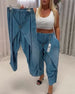 SPESIFIKASJONER Stil: Uformelt Materiale: Denim Bukse type: Lanterne Bukselengde: Lang Midje type: Midt i midjen Passform type: Vanlig Årstid: Vår,Sommer,Høst Detaljer: Lomme Anledning: Daglig Pakken inkluderer: 1 x Bukser STØRRELSESTABELL (cm) Størrelse Midje Hofte Lengde S 67 98 98 M 72 103 99.5 L 77 108 101 XL 83 114 102.5 2XL 8...