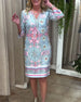 SPESIFIKASJONER Stil: Uformelt Materiale: Bomullsblandinger Kjole type: Rett Kjole Kjolens lengde: Knelengde Halslinje: V-hals Mønstertype: Trykt Ermetype: Vanlig erme Erme lengde: 3/4 erme Passform type: Vanlig Årstid: Vår,Sommer Anledning: Daglig Pakken inkluderer: 1 x Kjole STØRRELSESTABELL (cm) Størrelse Bryst Lengde S 97 100 M 101 1...