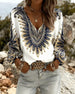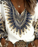 SPESIFIKASJONER Topp type: Topper Stil: Uformelt Materiale: Bomullsblandinger Anledning: Daglig Halslinje: V-hals Mønstertype: Trykt,Fjær Ermetype: Lanterne erme Erme lengde: Langermet Passform type: Vanlig Årstid: Vår,Sommer Pakken inkluderer: 1 x Topp STØRRELSESTABELL (cm) Størrelse Bryst Lengde S 97 65 M 101 66.5 L 105 68 XL 111 6...