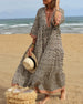 SPESIFIKASJONER Stil: Uformelt Materiale: Bomullsblandinger Kjole type: Rett Kjole Kjolens lengde: Maxi Halslinje: V-hals Mønstertype: Plaid,Trykt Ermetype: Vanlig erme Erme lengde: 3/4 erme Passform type: Vanlig Årstid: Vår,Sommer Anledning: Daglig Pakken inkluderer: 1 x Kjole STØRRELSESTABELL (cm) Størrelse Bryst Lengde S 97 130 M 101 ...