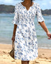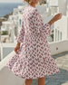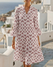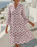 SPESIFIKASJONER Stil: Uformelt Materiale: Bomullsblandinger Kjole type: A-line Kjolens lengde: Knelengde Halslinje: V-hals Mønstertype: Trykt Ermetype: Lanterne erme Erme lengde: 3/4 erme Passform type: Vanlig Årstid: Vår,Sommer Anledning: Daglig Pakken inkluderer: 1 x Kjole STØRRELSESTABELL (cm) Størrelse Bryst Lengde S 97 100 M 101 101...