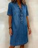 SPESIFIKASJONER Stil: Uformelt Materiale: Denim Kjole type: Rett Kjole Kjolens lengde: Knelengde Halslinje: V-hals Mønstertype: Ensfarget Ermetype: Vanlig erme Erme lengde: Kort erme Detaljer: Rufsete Passform type: Vanlig Årstid: Vår,Sommer Anledning: Daglig Pakken inkluderer: 1 x Kjole STØRRELSESTABELL (cm) Størrelse Bryst Lengde S 97...