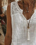 SPESIFIKASJONER Topp type: Tank Topp Stil: Uformelt Materiale: Bomullsblandinger Anledning: Daglig Halslinje: V-hals Passform type: Vanlig Årstid: Vår,Sommer Detaljer: Lappeverk,Blonder Pakken inkluderer: 1 x Tank-topp STØRRELSESTABELL (cm) Størrelse Bryst Lengde S 97 65 M 101 66.5 L 105 68 XL 111 69.5 2XL 117 71 3XL 123 71 MER...