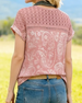 Bluse Med Spets Nett Utstansede Detaljer Korte Erm