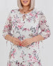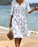 Kjole Blomstertrykk V-Hals Kort Erme