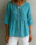 SPESIFIKASJONER Topp type: Bluser Stil: Uformelt Materiale: Bomullsblandinger Anledning: Daglig Halslinje: V-hals Mønstertype: Ensfarget Ermetype: Vanlig erme Erme lengde: 3/4 erme Passform type: Vanlig Årstid: Vår,Sommer Detaljer: Uthult Pakken inkluderer: 1 x Bluse STØRRELSESTABELL (cm) Størrelse Bryst Lengde S 97 65 M 101 66.5 L ...