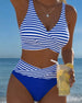 SPESIFIKASJONER Stil: Ferie Materiale: 15% Spandex,85% Polyester Anledning: Ferie Halslinje: V-hals Mønstertype: Stripete Erme lengde: Ermeløs Topp type: Bikini BH type: Bøyle-fri BH Truse type: Høyt snitt Passform type: Skinny Årstid: Vår,Sommer,Høst,Vinter Pakken inkluderer: 1 x Bikini STØRRELSESTABELL (cm) Størrelse Bryst Midje Hofte Unde...