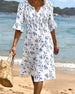 SPESIFIKASJONER Stil: Uformelt Materiale: Bomullsblandinger Kjole type: A-line Kjolens lengde: Midi Halslinje: V-hals Mønstertype: Trykt Ermetype: Vanlig erme Erme lengde: Halv erme Detaljer: Rufsete Passform type: Vanlig Årstid: Vår,Sommer Anledning: Daglig Pakken inkluderer: 1 x Kjole STØRRELSESTABELL (cm) Størrelse Bryst Lengde S 97 110...