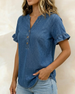 Bluse Denim V-Hals Rysj Kort Erme