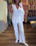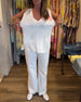 SPESIFIKASJONER Stil: Uformelt Topp type: Topper Materiale: Bomullsblandinger Mønstertype: Ensfarget Halslinje: Åpen skulder Ermetype: Flaggermus erme Bukse type: Rett ben Bukselengde: Lang Midje type: Midt i midjen Passform type: Vanlig Årstid: Vår,Sommer Anledning: Daglig Pakken inkluderer: 1 xSett STØRRELSESTABELL (cm) Størrelse Brys...