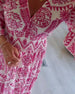 Icon1 Elegant kjole med trykk med V-hals-fold og klokkeerm