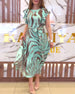 Stilfull Trykket Kjole Med Høy Hals Og Puffermer