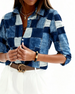 Genser med fasjonabel rutete kontrastfarge, løs passform