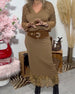 Kjole Slapp Krage Rysjet Panelert Fløyel