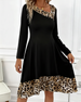 Kjole Skrå Krage Leopardtrykk Lappeteppe