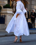 Knappet Kjole Med V-Utringning Og Lange Ermer