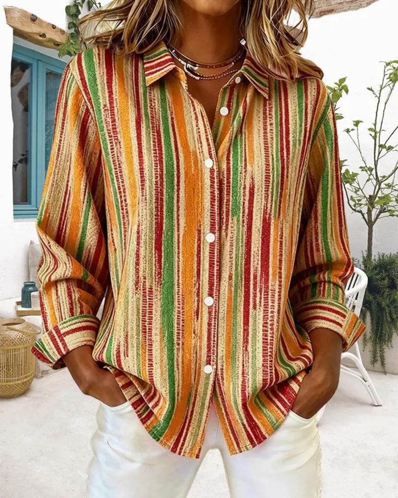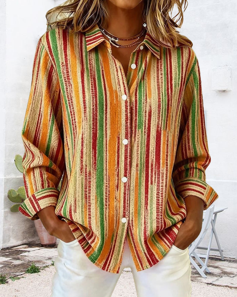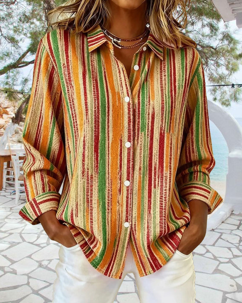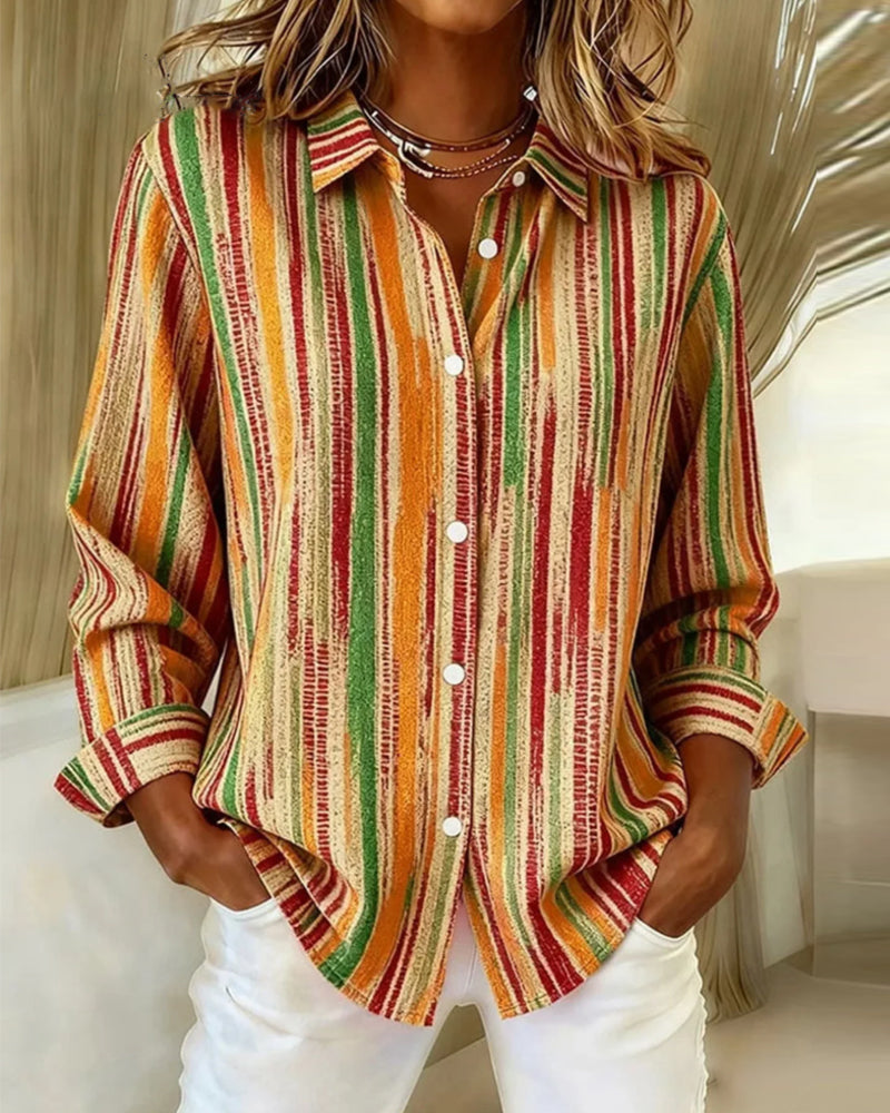 NY Icon1 Fargerik Stripet Casual Langermet Skjorte