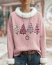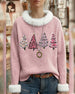 Genser Med Fløystekstur, Rundkrage Design Och Julgranmönster