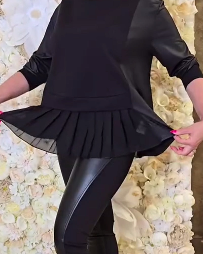 Todelt Sett Med Genser Med Rund Hals Og Splittkant Og Skjorte