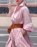 Knappet Kjole Med V-Utringning Og Lange Ermer