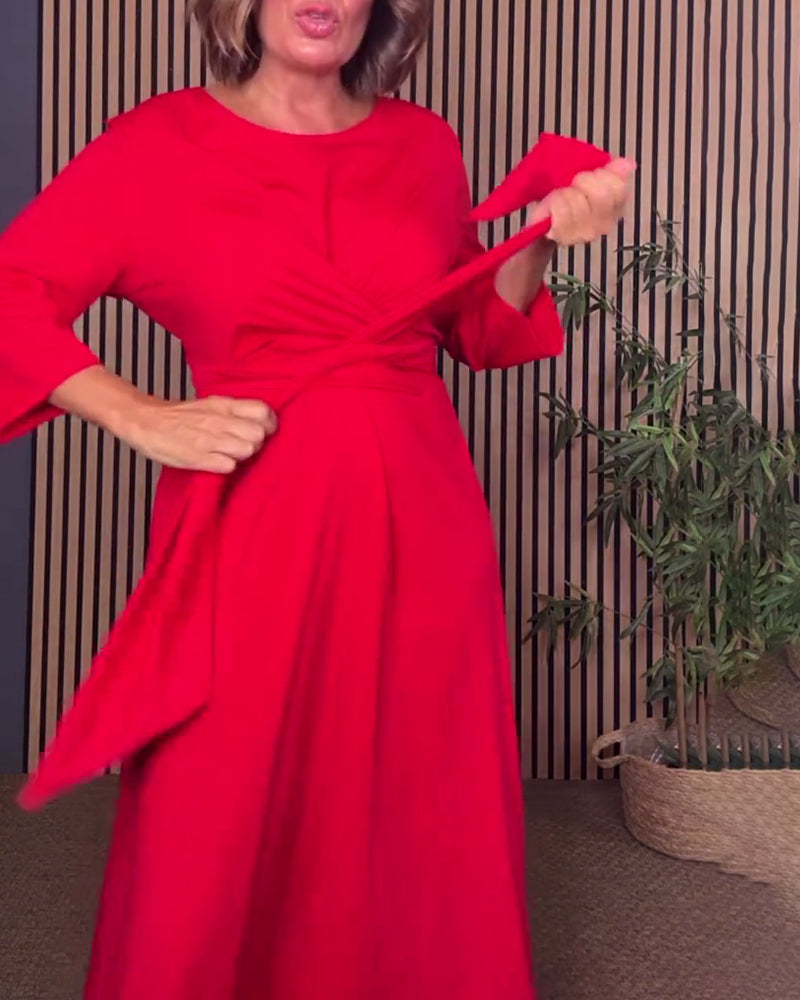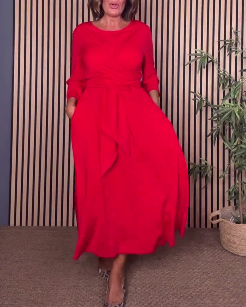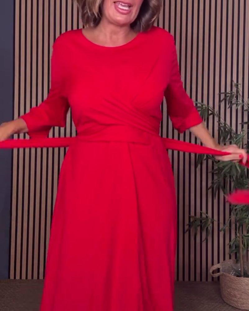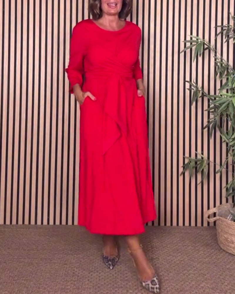 SPESIFIKASJONER Stil: Uformelt Materiale: Bomullsblandinger Kjole type: A-line Kjolens lengde: Midi Halslinje: Rund hals Mønstertype: Ensfarget Ermetype: Vanlig erme Erme lengde: 3/4 erme Detaljer: Snøre opp Passform type: Vanlig Årstid: Vår,Høst Anledning: Daglig Pakken inkluderer: 1 x Kjole STØRRELSESTABELL (cm) Størrelse Bryst Lengde...
