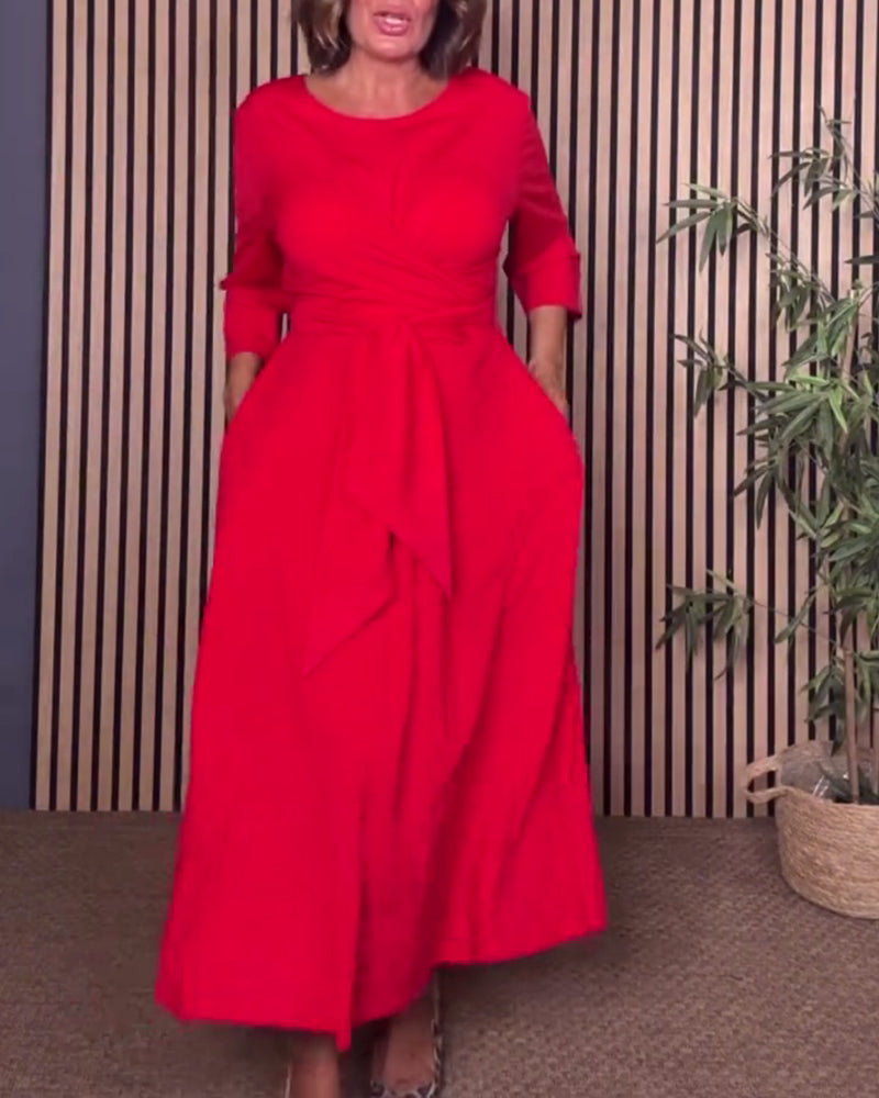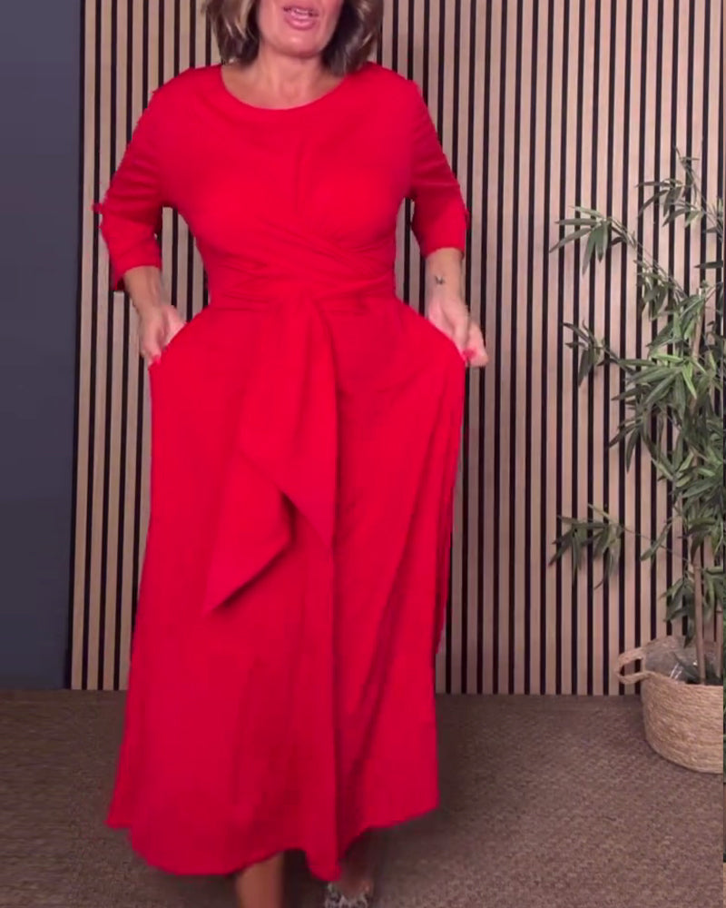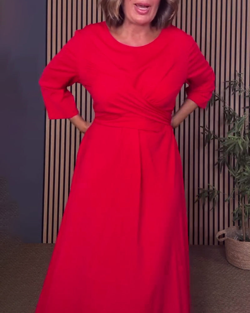 SPESIFIKASJONER Stil: Uformelt Materiale: Bomullsblandinger Kjole type: A-line Kjolens lengde: Midi Halslinje: Rund hals Mønstertype: Ensfarget Ermetype: Vanlig erme Erme lengde: 3/4 erme Detaljer: Snøre opp Passform type: Vanlig Årstid: Vår,Høst Anledning: Daglig Pakken inkluderer: 1 x Kjole STØRRELSESTABELL (cm) Størrelse Bryst Lengde...