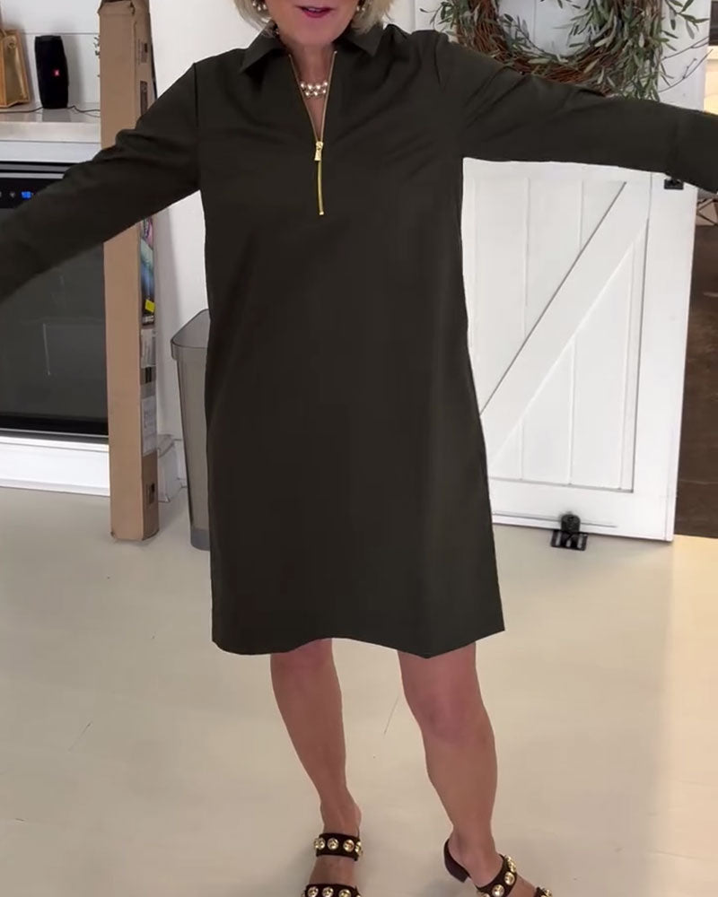 Icon1 Kjole Halv Glidelås Krage Trekvart Erm