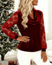 Helfarget Langermet Topp I Fløyel Med Lappverk