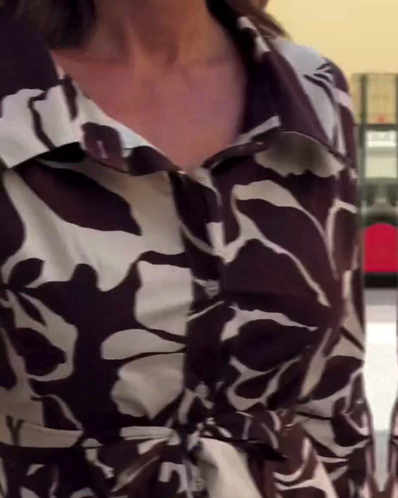 Kjole Med Revers Og Geometrisk Lappetæktsmønster