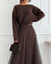 Kjole Med Paillettdetalj, Langermet Design Og Rundhals Stil