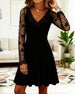 Kjole Med V-Hals Design, Tüllstoff Og Patchwork Detalj