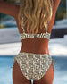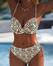 Bikini Metallspenne Høy Midje Splittet Trykt