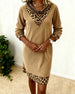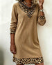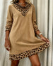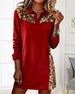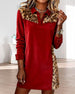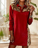Kvinne Kausal Kjole Med Jultema, Leopardmønster Och Patchworkdetalj