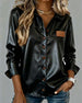 Skjorte Revers PU Lappet Knappet Helveis