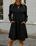 Kjole Med Fargeblokkdesign, Stikketalj Och Lommeegenskap